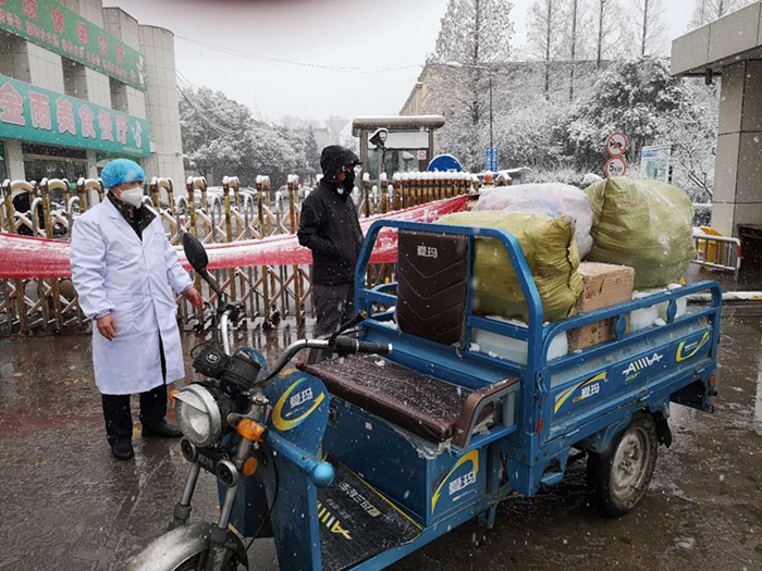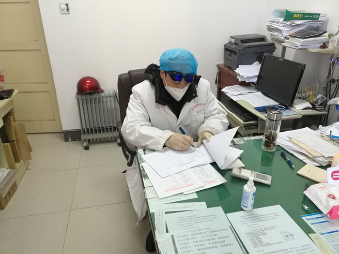 对于有之前往返武汉等疫情严重地区及其周边地区的人员,唐超峰坚持每天两次去相关人员家中了解情况、开展体温监测和心理咨询,指导如何进行居家隔离,严格进行医学观察,一直到14天的隔离期结束。“每当有密切接触人员需要进行入户医学观察时,唐院长都要冒着被感染的风险,坚持自己去隔离观察者家里进行一系列的专业处置,并带去米面等生活必需品,保障隔离人员的生活需要”, 校医院副院长陈宏伟医生说,“从他身上,我们看到一名共产党员的初心使命和担当精神,深深地感动着我们每一个人,鼓舞我们坚守一线,奋战在一线。” 奋勇“逆行”情系着师生的生命安全 唐超峰在校医院工作已经35年了,始终恪尽职守,兢兢业业地做好本职工作。作为校医疗保健中心主任、校医院院长,他承担着学校医疗保健团队的建设管理任务;作为校医院业务骨干,他一人就承担了透视、拍片、B超三项具体业务工作。可以说是,身心负荷非常之重。这个春节,他原本是计划和爱人去合肥女儿家过节、休假的,但疫情就是命令,防控就是责任。面对来势凶猛的疫情,大年初一,唐超峰果断地决定放弃休假,将患重病的妻子安顿在女儿家后,便孤身一人返回学校,专心投身到疫情防控工作一线。为切实做好疫情防控工作,连日来,无论是刮风还是雨雪,唐超峰从未休息一天,总是从早忙到晚。从卫生清洁消毒,到查看统计报表,从联系采购防控物资,到完成居家隔离观察人员的健康监测等,每一项任务、每一个细节,他都严格把关,谨防出错遗漏。此外,他还认真钻研,请教有关专家拟出中药处方,组织采购中药材,准备在新学期开学时置于食堂免费供应师生,进一步巩固疫情防控工作的成果。