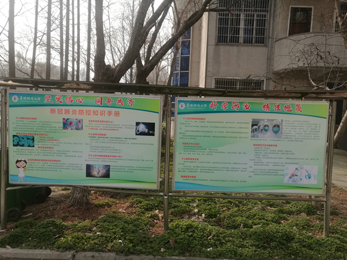 一方面,严格落实24小时值班制度,设预检分诊处,做好门诊记录,对到校医院就诊的教职工一律进行体温测量和登记备案;对发热病人实行首诊跟踪负责制,做好流行病学调查、医学观察及上报工作。另一方面,认真收集整理关于新冠肺炎科学权威的信息,制作成宣传展板,引导广大教职工不信谣、不传谣,科学理性应对疫情,掌握必要防护知识,提高自我防护能力;协助和指导校园门岗保安等相关部门开展体温检测、消毒等防控工作。及早应对、科学预案、精准施策,为学校坚决打赢疫情阻击战打下了坚实的基础。