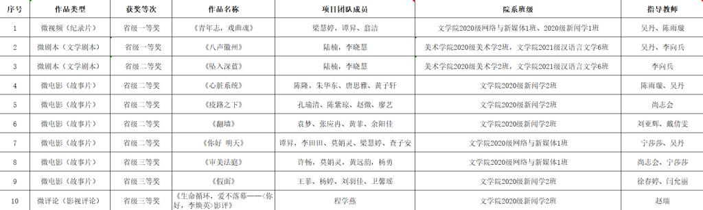 10月29日,由安徽省教育厅主办的2022年安徽省大学生微电影大赛圆满落幕。省赛阶段共收到省内55所高校各类作品共873件,经专家评审,共267件作品入围等级奖,我校有10件作品获奖,其中省级一等奖2项、省级二等奖5项、省级三等奖3项。