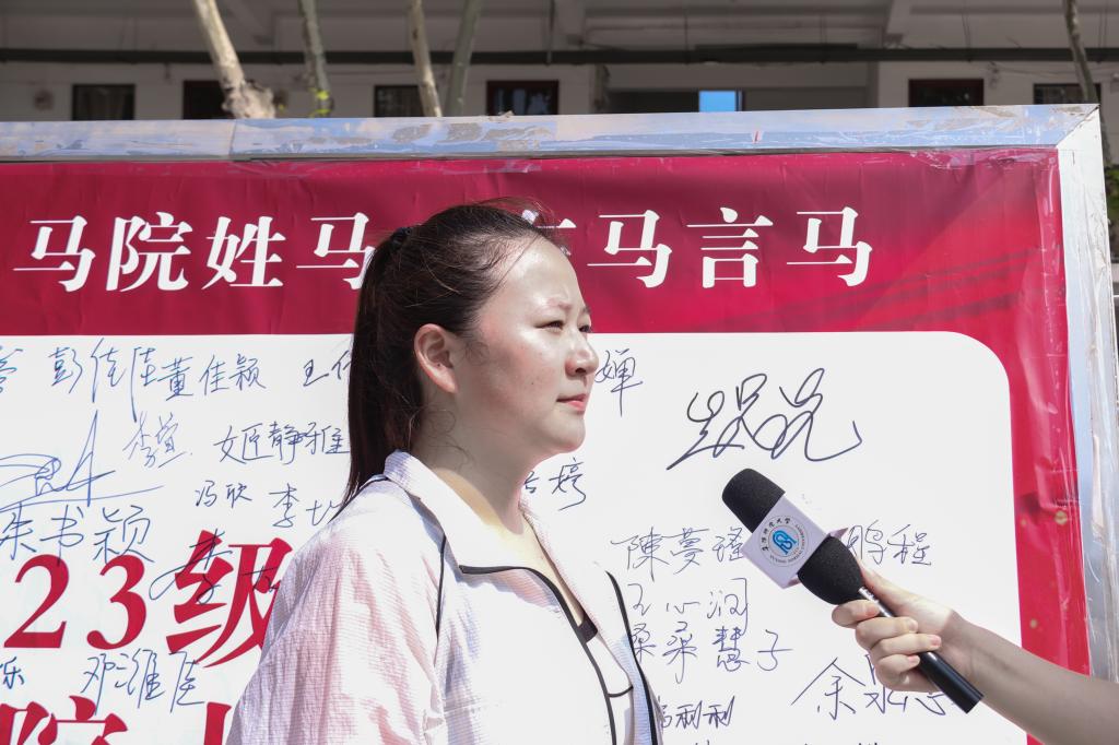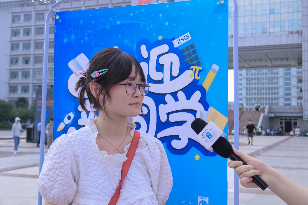 在问到大学校园初印象时,2023级制药工程朱可婷回答道:“校园很大,风景很美,同学之间也很友好,乐于助人,宿舍环境干净整洁,但更美丽的是这些辛勤迎接我们的老师们、志愿者们,他们耐心介绍校园的每一处,并细心地解答所有问题,我的行李也都是他们帮忙搬运上楼的,这让我感到很温馨。”