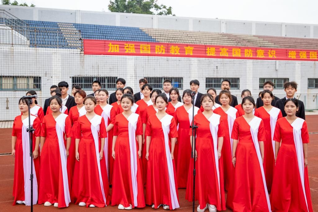 在大学生合唱团的带领下,现场师生齐声歌唱《阜阳师范大学校歌》,2023级新生开学典礼暨军训动员大会圆满闭幕。