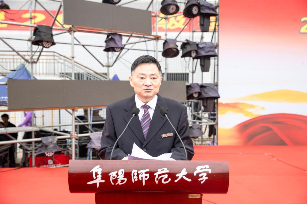 淮水汤汤,颍水荡漾,金秋时节,丹桂飘香。10月7日上午,我校2023级新生开学典礼暨军训动员大会隆重举行。校领导程曦、涂红松、张庆旭、季爱新及阜阳市颍东区人民武装部军事科科长张文华、颍东区人民武装部学生军训集训队队长王飞虎出席大会。各二级学院党委(党总支)主要负责人、相关职能部门主要负责人、承训部门代表、教师代表及学生代表、全体2023级新生及新生辅导员、辅导员助理参加了大会。大会由校党委副书记涂红松主持。