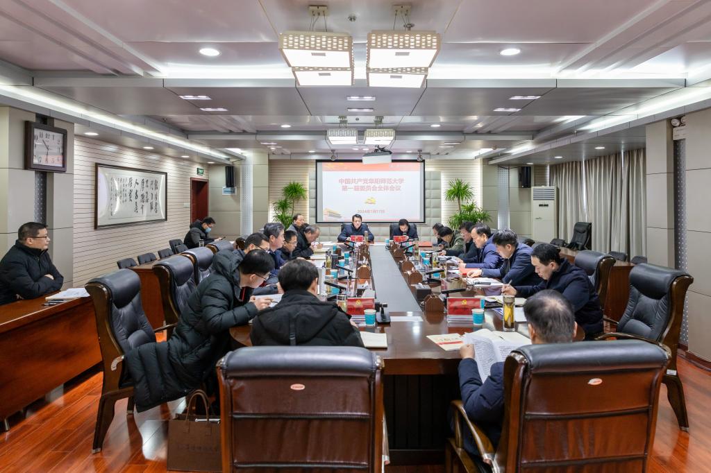 1月17日上午,中国共产党阜阳师范大学第一届委员会召开全体会议,深入学习习近平总书记在中共中央政治局第五次集体学习时的重要讲话精神,传达学习省委常委会赴阜阳市召开现场办公会会议纪要,听取和审议校党委书记程曦代表党委常委会作的题为《深入学习贯彻党的二十大精神锚定目标砥砺前行为建设高水平师范大学提供坚强政治保障》的工作报告。会议由校党委书记程曦主持。