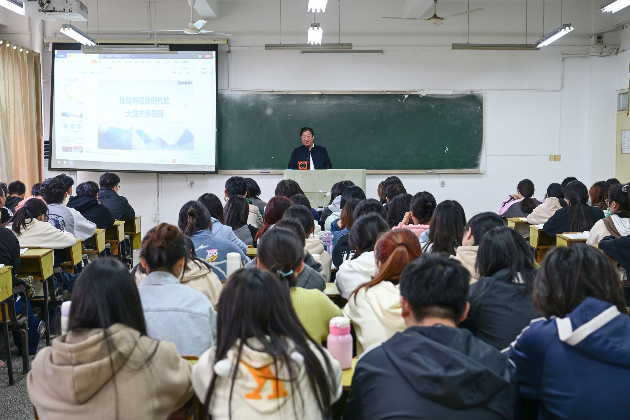 为坚持不懈用习近平新时代中国特色社会主义思想铸魂育人,大力推动党的二十大及二十届三中全会精神融入思政课,深入贯彻落实习近平总书记关于思政课建设的重要指示精神,10月25日和28日,程曦分别为我校2023级思想政治教育和生物制药两个教学班级的同学主讲了题为《推动构建新时代大国关系格局》的《形势与政策》课,马克思主义学院主要负责人、相关思政课教师等参与讲思政课活动。
