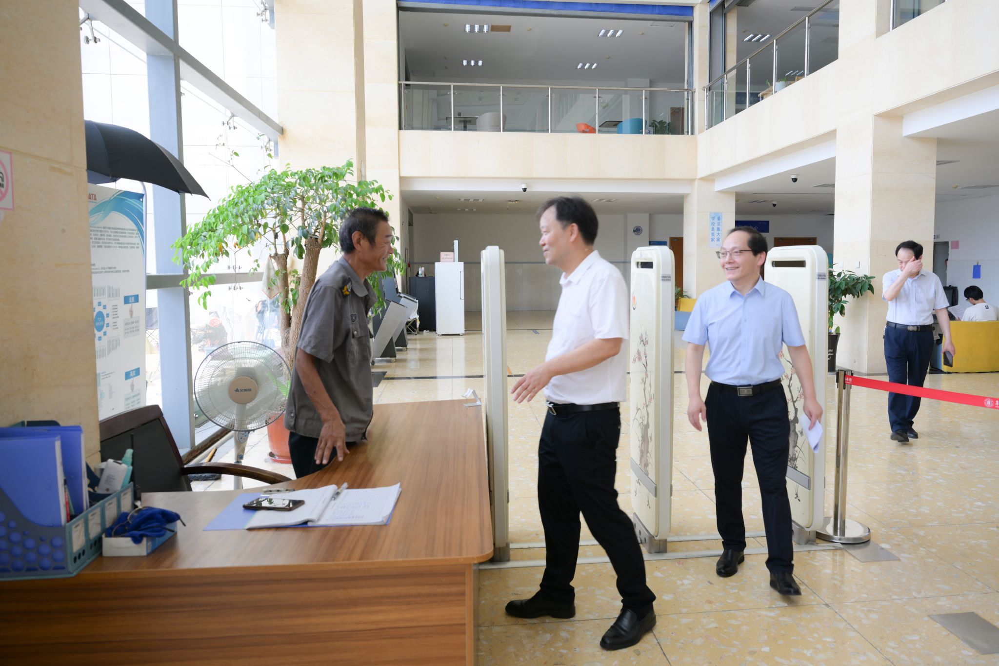 在西湖校区逸夫图书馆,方廷勇与暑期坚持一线工作的图书管理员、安保人员以及在图书馆学习的学生进行交谈,分别询问工作情况和学习生活情况,为他们带来学校的关心与关怀。