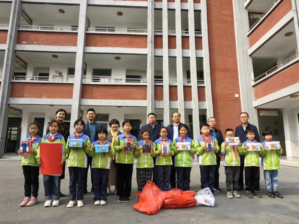 在王湾小学,调研人员还为小学生们送去了文具礼包和运动器材,希望他们能够好好学习,全面发展,努力成为对社会有用的人才。