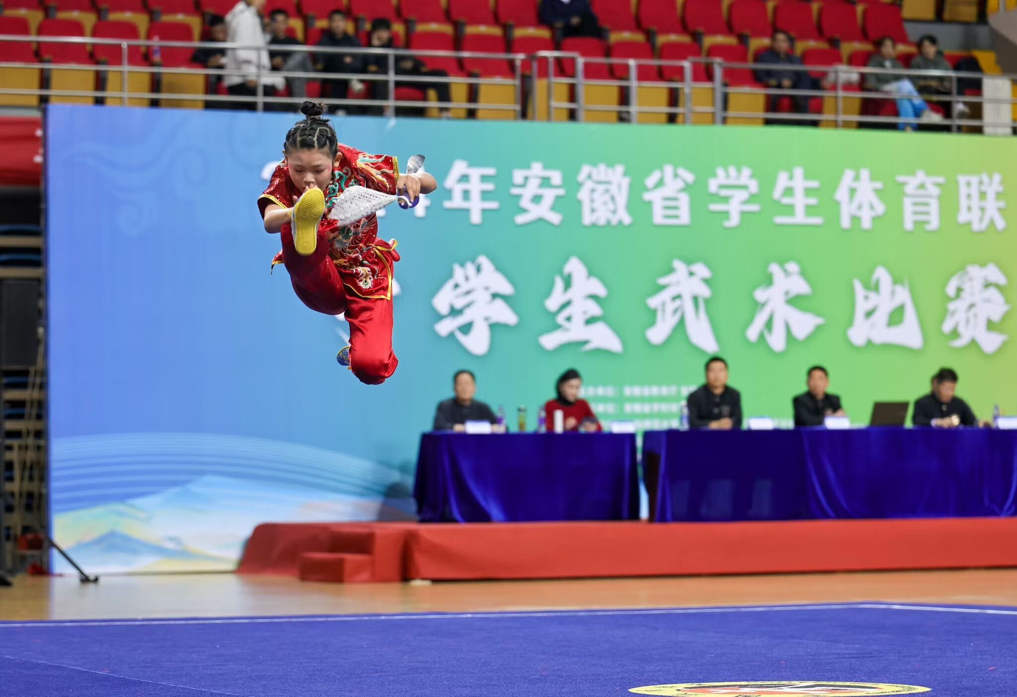 安徽省学生体育联赛中学生武术比赛旨在传承中华武术文化,进一步提升我省青少年武术运动水平,有效促进了青少年校园武术活动的普及与提高,传承民族传统体育项目,增强当代青少年民族认同感。