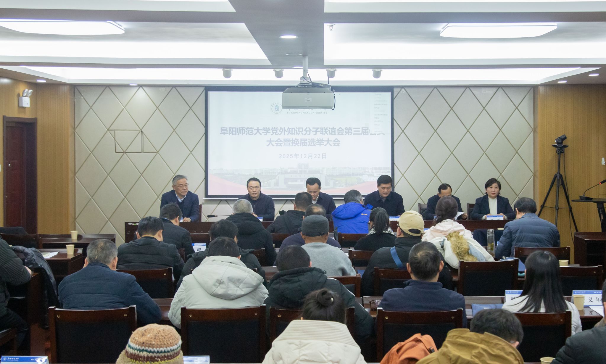 12月22日下午,阜阳师范大学党外知识分子联谊会第三届会员大会暨换届选举大会在西湖校区正行楼1302会议室召开。阜阳市政协副主席、市知联会副会长于伟,校党委副书记孙林华,校党委常委、副校长窦贤琨,阜阳市委统战部副部长郭阳出席会议。学校相关职能部门负责人及知联会会员参加会议。会议由窦贤琨主持。