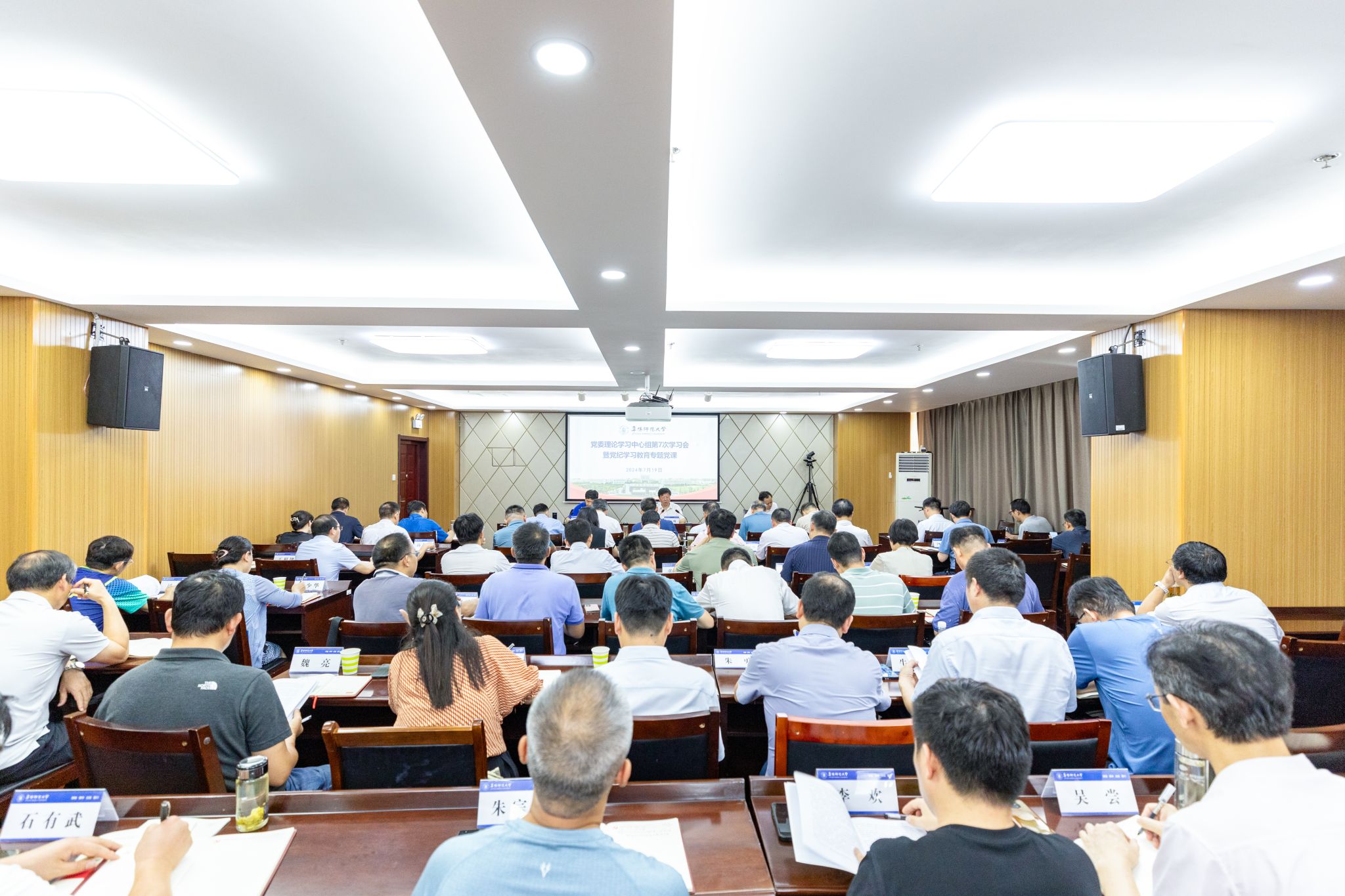 7月19日下午,学校在西湖校区正行楼1302会议室召开2024年度党委理论学习中心组第7次学习会暨党纪学习教育专题党课,深入学习贯彻习近平总书记重要讲话精神特别是关于全面加强党的纪律建设的重要论述,把党纪学习教育引向深入。在校校领导程曦、方廷勇、张庆旭出席会议,校党委理论中心组成员、各单位主要负责人参加会议,校党委书记程曦主持会议并讲授纪律专题党课。