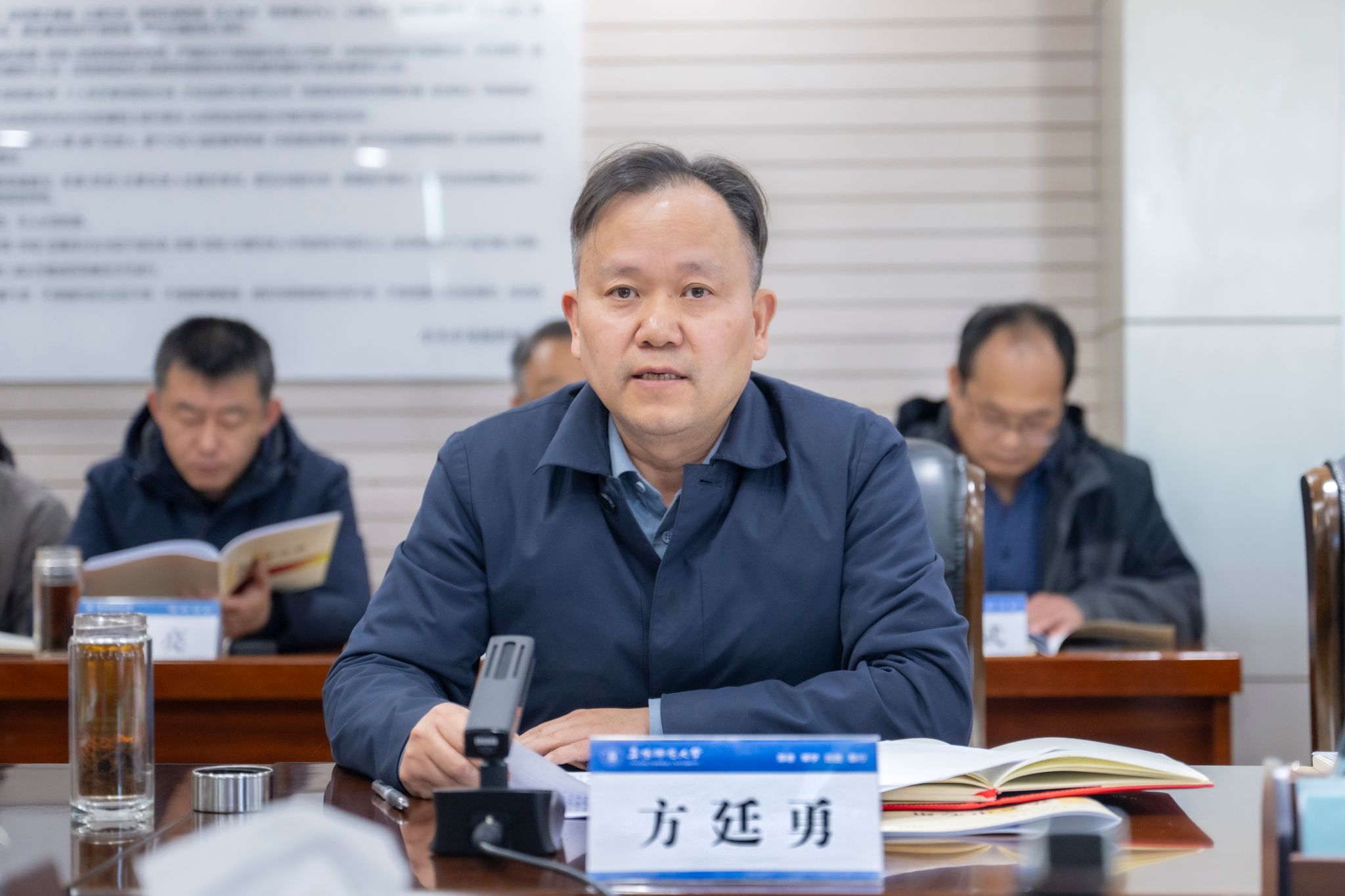 校党委副书记、校长方廷勇传达了习近平总书记最新重要讲话精神,并分享了学习全会精神的心得体会和工作思路。他指出,要深刻领会习近平总书记关于“十五五”规划的重要论述,把准方向、凝聚共识;要全面回顾学校“十四五”发展成效,总结经验、正视问题;要高质量编制学校“十五五”规划,系统谋划、实干争先,奋力谱写阜阳师范大学高质量发展新篇章。