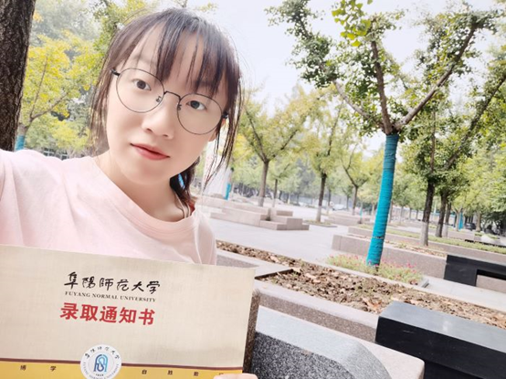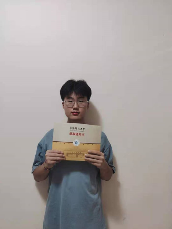 当询问他拿到录取通知书那一刻的感受时,他说:“天道酬勤,宁静致远,阜师大,我来了,我将继续奋斗。”