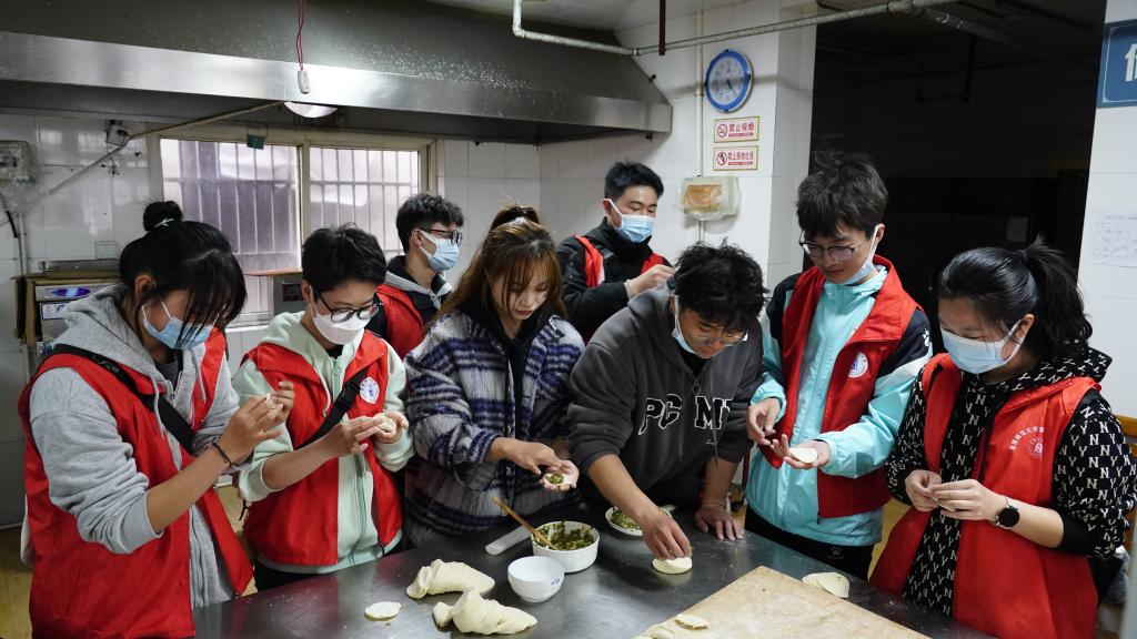 在忙碌之余大家还一同包饺子,体现了志愿者们的爱心与热情,“今天的饺子格外好吃!”来自文学院汉语言文学(师范)专业4班的志愿者麻艺涵笑着说道。