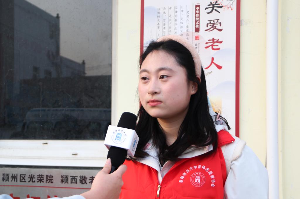 来自2021级文学院汉语言文学(师范)专业4班的志愿者麻艺涵说:“在雷锋月,非常有幸参与到本次助老爱老的志愿服务中,尊老敬老是中华优秀传统美德,爱老助老是新时代的风尚,作为青年一代,我们更应传承好雷锋精神,奉献温暖。”