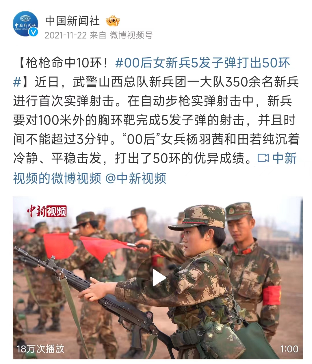 奋楫笃行,臻于至善。从大学生活进入到令行禁止的部队中去,对杨羽茜而言是一个极大的挑战。一日生活制度要严格落实、以六面十二角的豆腐块为代表的内务要求、每日在高台阶上站军姿至少一个小时、低姿匍匐到全身黑青、单手持枪拿到手抖......这些都曾经让她感到难以坚持下去。但每当听到嘹亮的军号、看到鲜艳的红旗,她便又一次想起了自己入伍的初心:锻炼自己,报效祖国!“我有了100次放弃的念头,但是我又在第101次站了起来。”杨羽茜说。