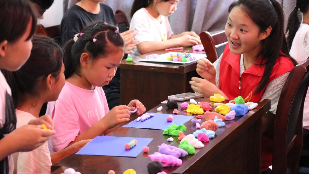 不啻微茫,造炬成阳。高梓初次接触社区实践是在大一的寒假,她在社区举办的民俗节中当志愿者。被问及参加志愿服务活动的初衷,她说:“作为新时代的中国青年,我们理应把‘奉献、友爱、互助、进步’的青年志愿者精神内化于心,外化于行。”在接下来的日子里,她也坚定着做志愿服务的信念。只要有志愿服务的活动,她就积极报名参加。2023年6月,高梓通过院级选拔,成功加入校级重点团队之一的教育学院“点亮繁星,一路童行”三下乡支教团队。