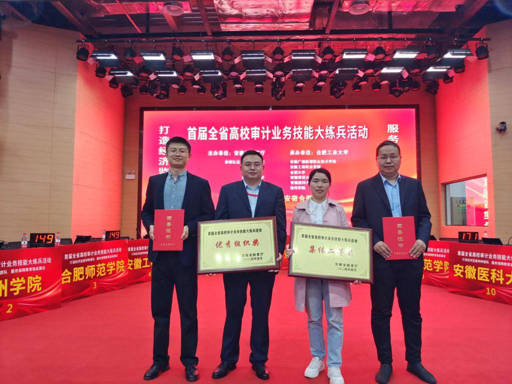 自2000年开始,学校独立设置审计处,负责全校审计工作。2015年被评为全省“内审质量评估先进单位”,2017年1个项目获评省审计厅“优秀内审项目”,2018年12月5日《中国审计报》对学校内审计工作情况进行专题报道。2021年审计整改做法入选安徽审计信息(2021年15期),2022年承担省教育厅审计重点课题1项,2023年2个内审案例入选省属高校优秀内审案例。多人次获省市“内部审计先进工作者”“内部审计领军人物”“内部审计标兵”等荣誉称号。