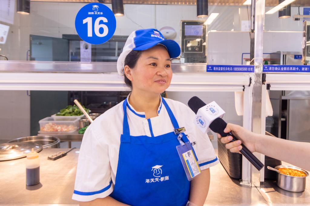 白新春告诉我们,为了更好地满足学生们对各种菜品种类和口味的需求,她会经常询问同学们的口味偏向,并在窗口前设置建议表,方便同学们及时提供建议,她根据这些留言经常更换菜品,给同学们带来惊喜。“作为食堂的劳动者,我们的目标就是让学生们能吃得更好,保证好每份菜品的质量和价格,服务好每一位学生,让同学们在吃到食堂饭菜的同时,也能够感受到家一样的温暖。”面对着我们,白新春笑得很灿烂,劳动给予她幸福,她也选择奉献与付出。在提及未来的工作计划时,白新春表示会不断提高自己的工作能力,积累工作经验,把自己的工作做到最好。于她而言,五一劳动节不仅仅是一个节日,更是对劳动者们辛勤劳作的一种尊重和肯定。白新春作为食堂工作者,尽力为学生提供支持和帮助,是学生心中“最美的人”。