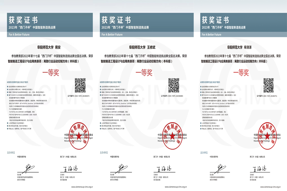 科技是国家强盛之基,创新是民族进步之魂。科技创新走入校园,赓续壮大一批人才队伍。我校学子在2023年第十七届“西门子杯”中国智能制造挑战赛——智能制造工程设计与应用类赛项(离散行业运动控制方向)中获全国总决赛团体第一名。这个“国奖”团体是我校物理与电子工程学院2021级电气工程及其自动化专业的辛洋洋、蒋安和王修武三位同学。
