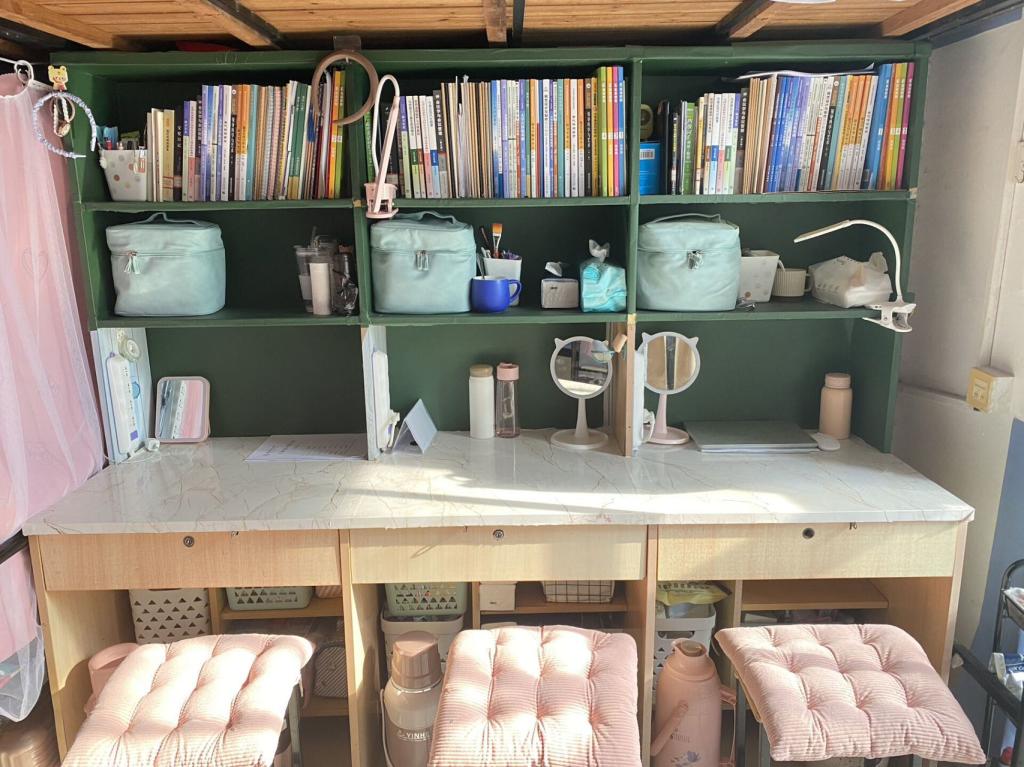 窗明几净,居室雅致。宿舍成员严格遵守学校的各项规章制度,积极配合学校精神文明建设工作,确立宿舍内务、制度标准,除了保持干净整洁的宿舍环境,宿舍成员们还注重消防安全和财产安全,具有极高的安全意识和节电意识。她们以“寝室书画”“寝室装扮设计比赛”等创新形式积极参与到学院“寝室文化节”活动中,从不同维度诠释着自己寝室的独特风格,在阳台上养花,布置照片墙,营造出温馨和谐、积极向上的宿舍氛围。