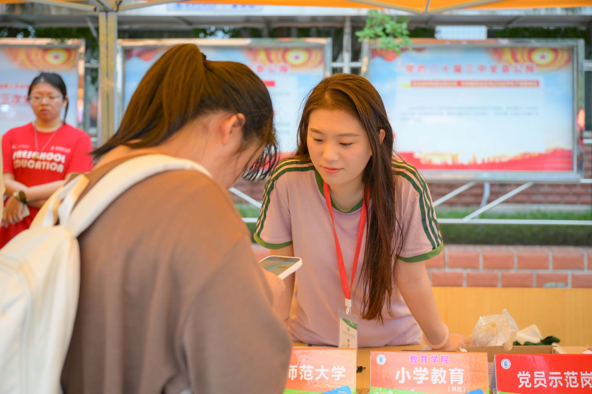 在迎新现场,矗立在迎新广场中央的电子大屏,实时动态显示新生报到数据。在各学院报到注册点,宣传展板、签名墙等各具特色,吸引了广大新生及家长打卡留念,青年志愿者们热情细心地引导新生完成报到流程,帮助其搬运行李,并积极介绍校园环境和大学生活经验。