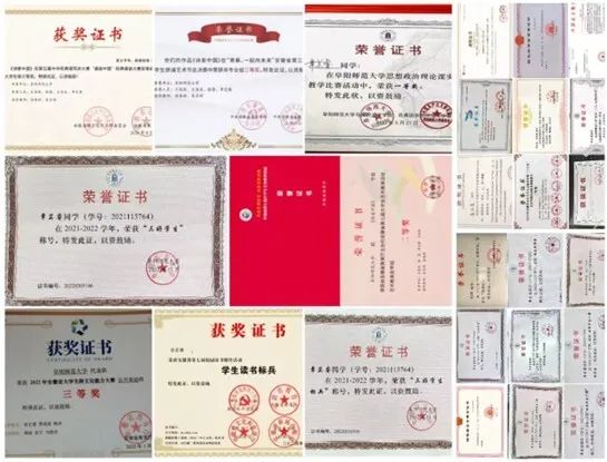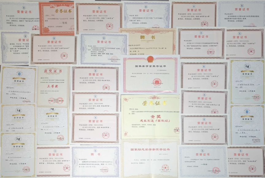 在校期间,获国家奖学金、国家励志奖学金、校长奖学金、优秀学生一等奖学金、创新创业奖学金等;获“三好学生标兵”“三好学生”“ 优秀学生干部”“ 优秀团员”等荣誉称号;主持的项目“积极刑法观视角下网络暴力的治理困境及应对策略”获国家级大学生创新创业训练计划立项,发表三篇论文,并以优秀等次结项。