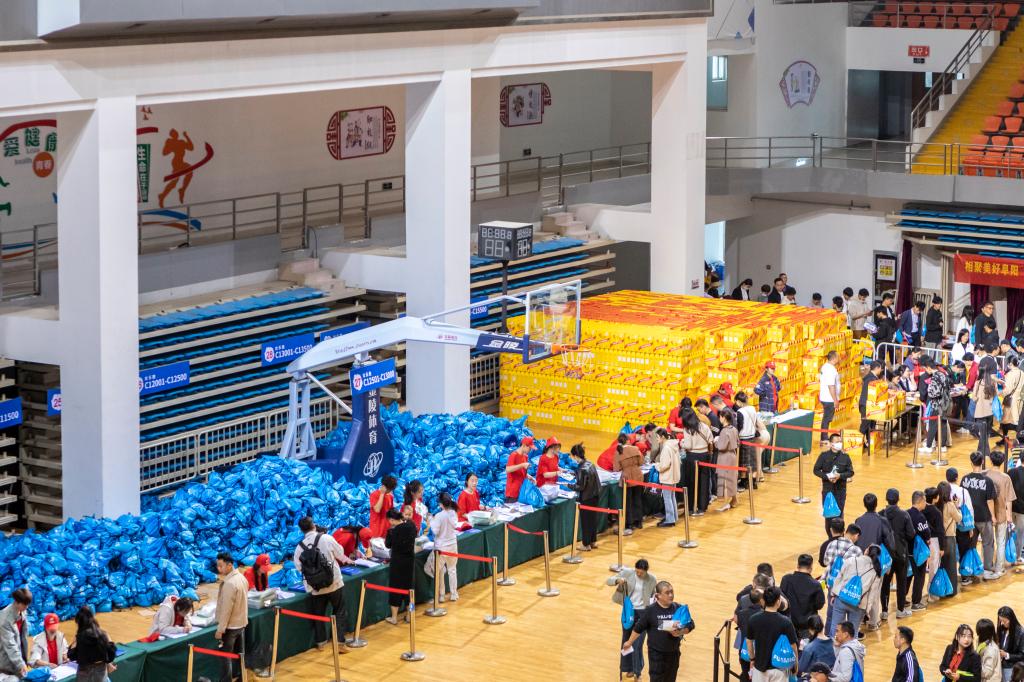 学生志愿者们,从18日起开始搬运物资及分装参赛包工作。为了确保每一位参赛者,都能顺利领取到参赛包,学生志愿者们分工有序,按照竞赛物资、特色产品等进行装包,为马拉松做好准备工作。