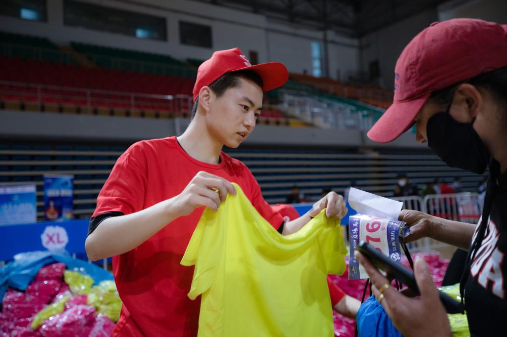 入场引导、扫码签署免责声明、参赛身份验证、打印并获取领物小票,分发号码布、参赛包、参赛服装,芯片检测......他们以满腔的热情、专业的服务,提供暖心的保障;他们用热情、专业、有爱的志愿服务,践行奉献、友爱、互助、进步的志愿精神。