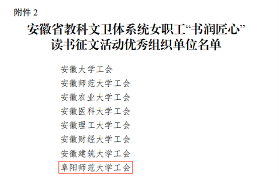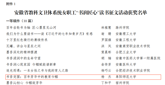近日,从省教科文卫体工会传来喜讯,我校女职工在全省教科文卫体系统女职工“书润匠心”读书征文活动中表现优异,选送作品分获一、二、三等奖,校工会获优秀组织单位,展现了我校女职工深厚的文化素养与昂扬的精神风貌。