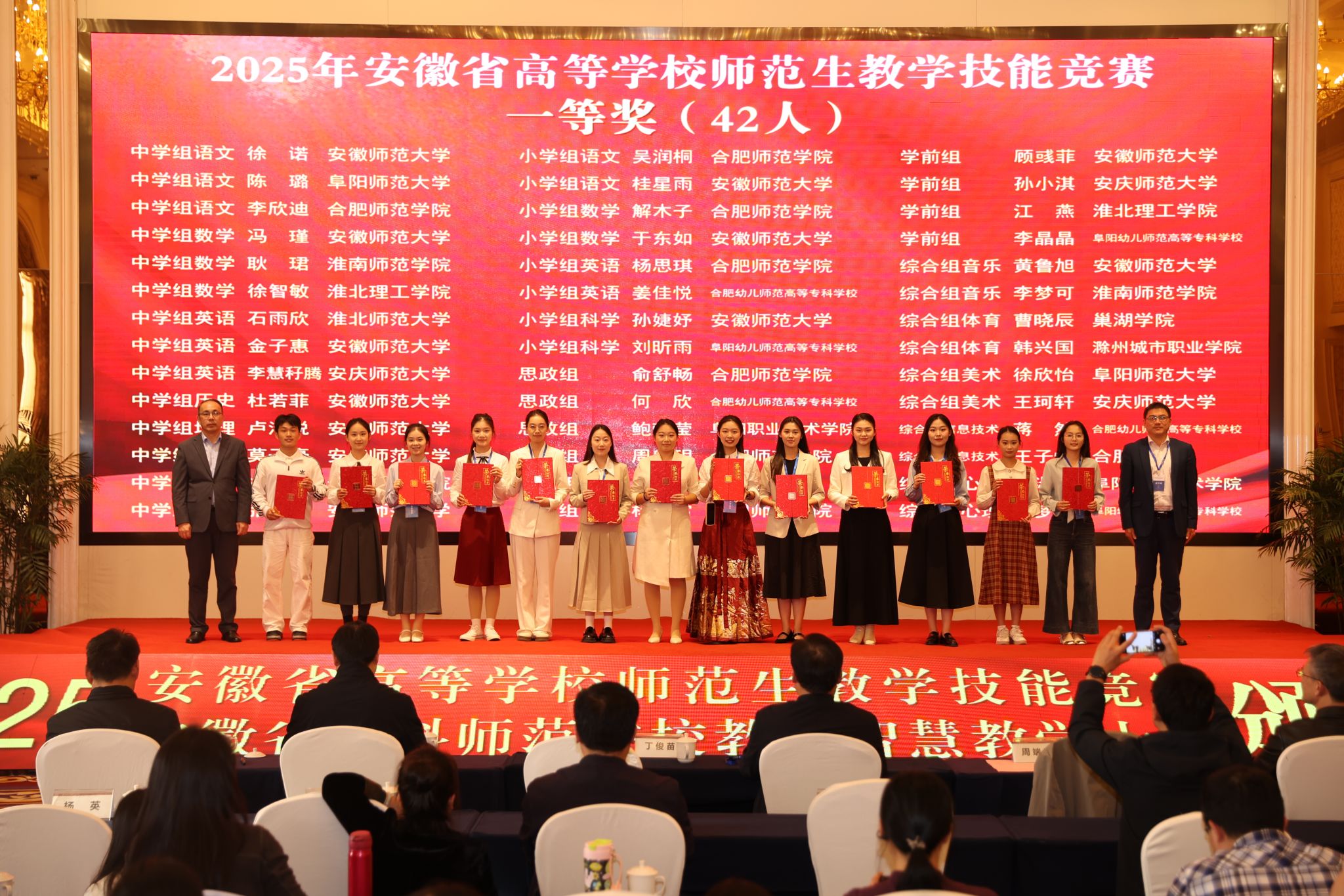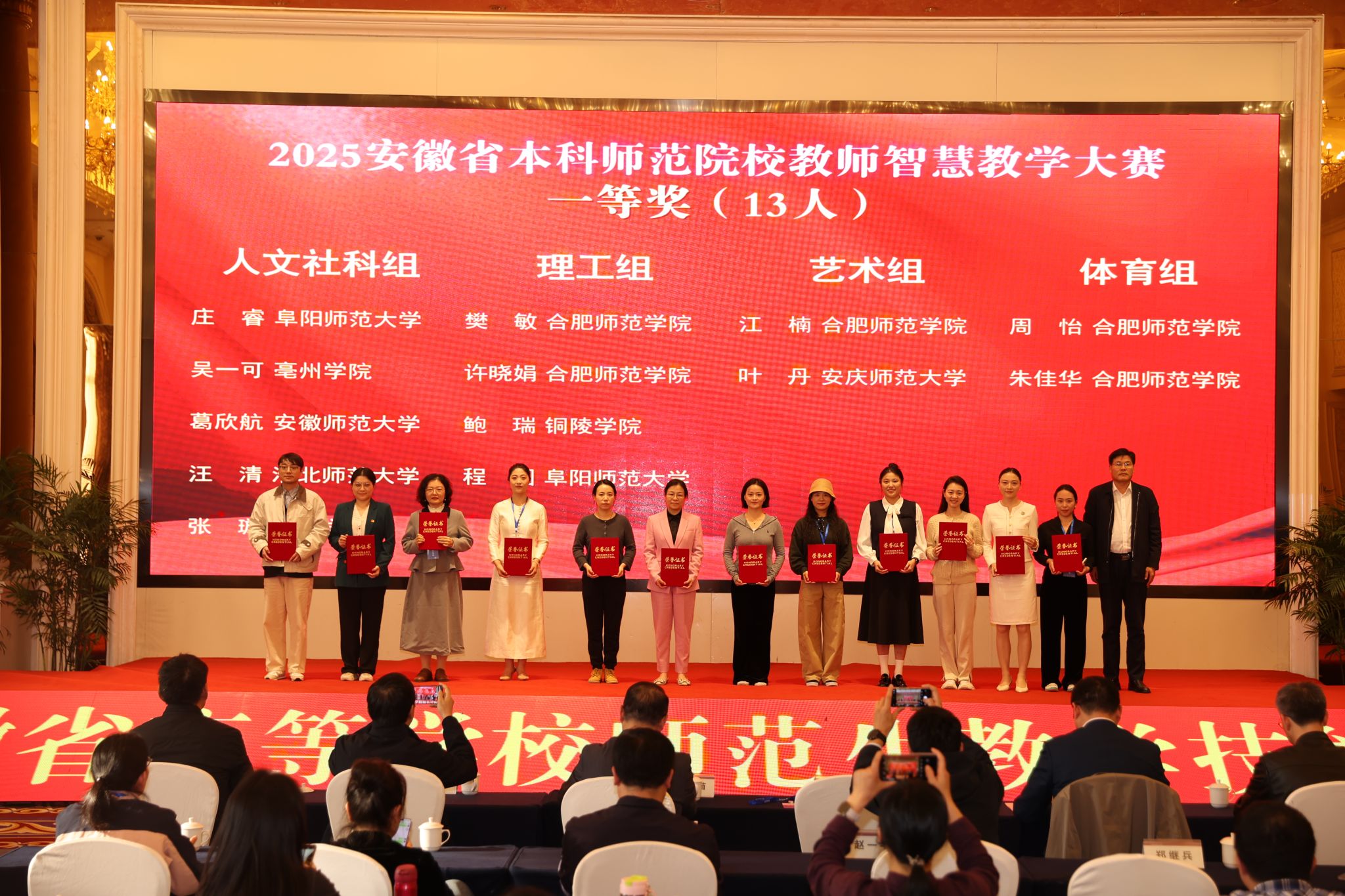 近日,2025年安徽省本科师范院校教师智慧教学大赛和安徽省高等学校师范生教学技能竞赛省级现场赛在合肥师范学院滨湖校区举办。我校师生凭借扎实的专业功底和出色的教学能力,在两项大赛中表现优异,荣获多项佳绩,展现了我校教师队伍建设和师范教育人才培养的显著成效。