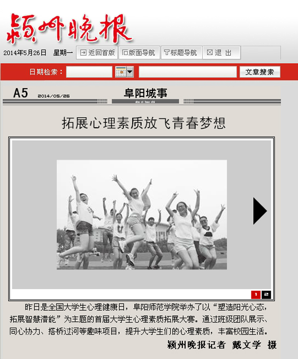 【颍州晚报】:拓展心理素质放飞青春梦想 2014-05-28