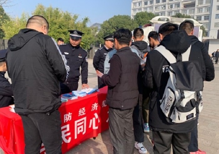 市公安局工作人员现场向学生派发了《如何拒绝校园贷》《非法集资宣传册》《反假币手册》等宣传资料。