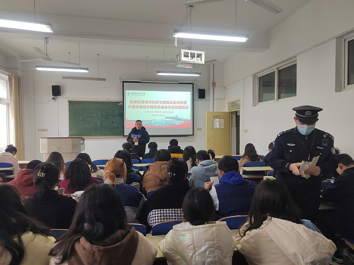 深入推进反电信诈骗禁毒宣传教育工作,筑牢校园安全防线,2023年2月23日我校联合清河社区与颍西派出所在西湖校区三区组织开展了反电信诈骗和禁毒宣传教育活动。