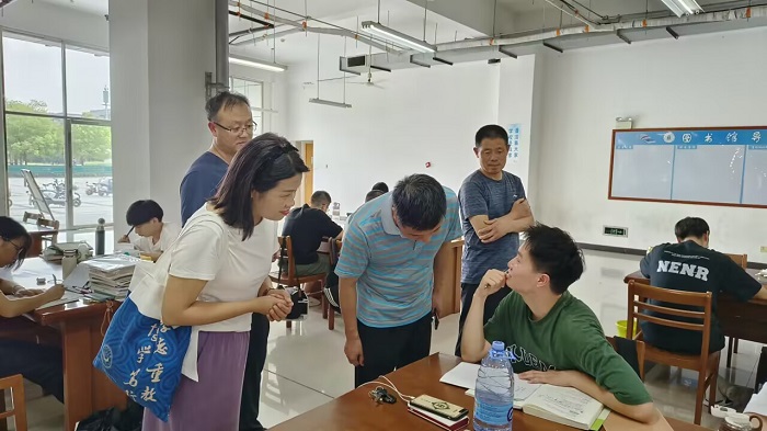 走访组一行先后走访慰问了西湖校区计算机与信息工程学院和化学与材料工程学院实验室里备赛学科竞赛、参与科学研究的学生,图书馆里各类备考的学生,以及清河校区音乐舞蹈学院参加大学生艺术展演备赛训练的学生。走访过程中,他们与学生们亲切交谈,关心关怀同学们的学习训练成果和生活情况。天气炎热,他们叮嘱同学们要提高安全意识做好个人防护,科学安排作息做到劳逸结合,遇到问题和困难及时向学院和学校反映。留校学生纷纷表示留校期间将严格遵守学校管理制度,充分利用好学校资源认真学习、刻苦钻研。