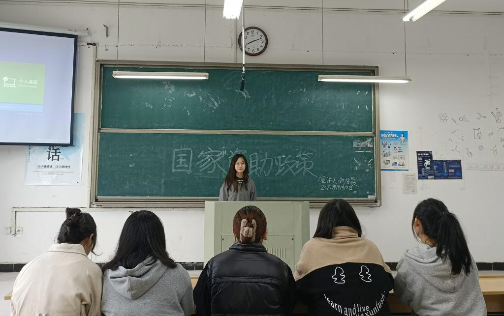 在送政策回母校活动中,主要通过随机采访学生,了解他们对国家资助政策的知晓情况和在班级集中宣讲和针对困难学生进行个别谈心谈话,线上宣传等方式展开。我通过线上线下相结合的方式,给他们宣讲资助政策。我结合着自身的成才和学习经历,向周围的人详细介绍了国家的相关资助政策,答疑解惑,使他们对国家当前资助政策有了更深层次的认识。我也讲了我自己本人在国家资助政策帮助下如何安心学习,健康成长,来彻底扫除他们经济上的顾虑,激励他们努力学习,更有信心和动力勇敢追梦。