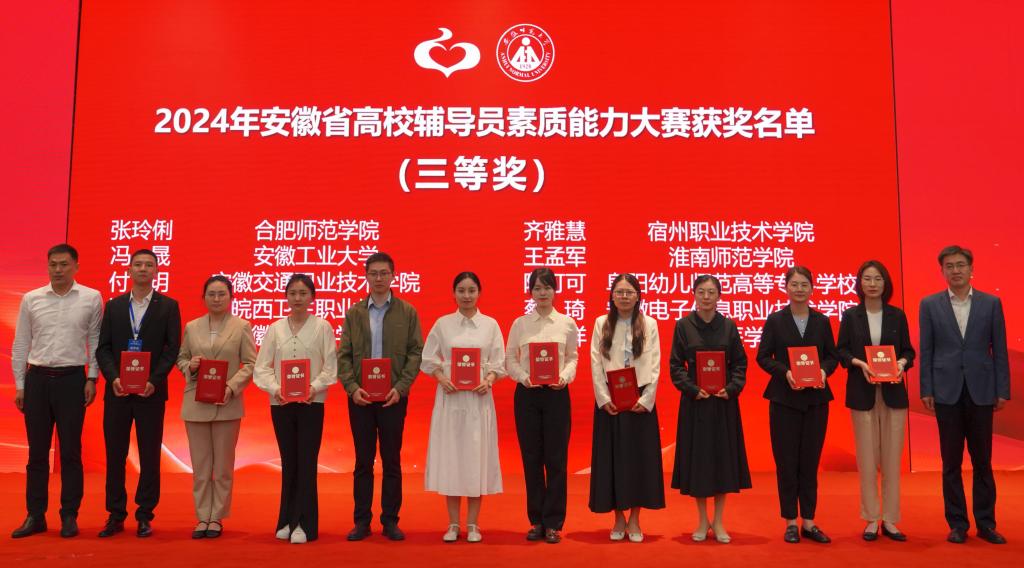 5月9日至11日,2024年安徽省高校辅导员素质能力大赛在安徽师范大学举行。我校体育学院专职辅导员张桃、历史文化与旅游学院专职辅导员于雪梅分别取得大赛39名、40名,并列获得三等奖。