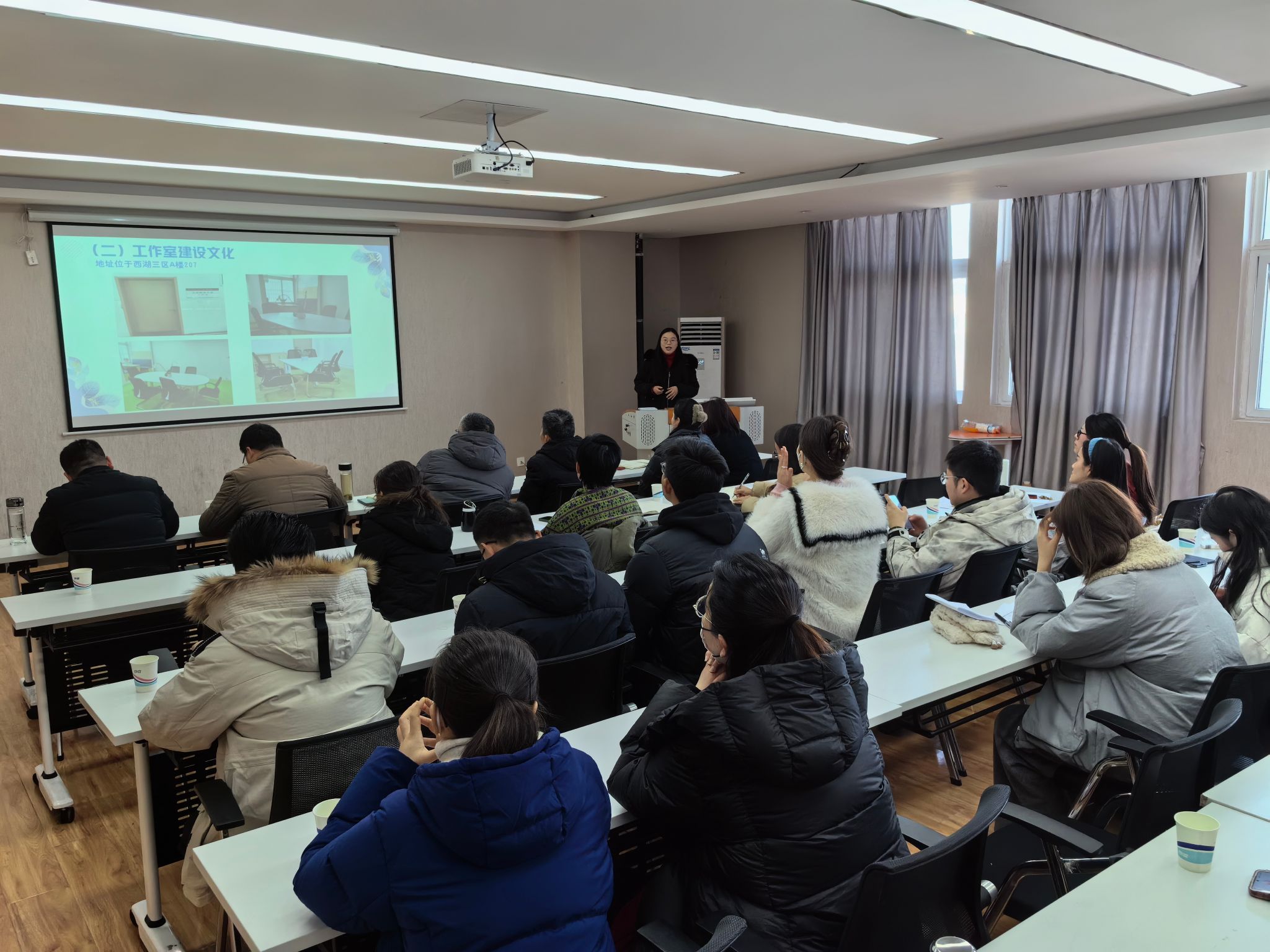 1月10日上午,学校在西湖校区正行楼604室举行辅导员名师工作室建设中期汇报会,学生工作处处长黄正杰、宣传部副部长王峰、校团委副书记杨劲、数学与统计学院党委副书记徐悦、马克思主义学院党委副书记徐朝东等出席活动,我校首批6个辅导员名师工作室的全体成员和部分专职辅导员代表参加活动,活动由学生工作处副处长吴雪影主持。