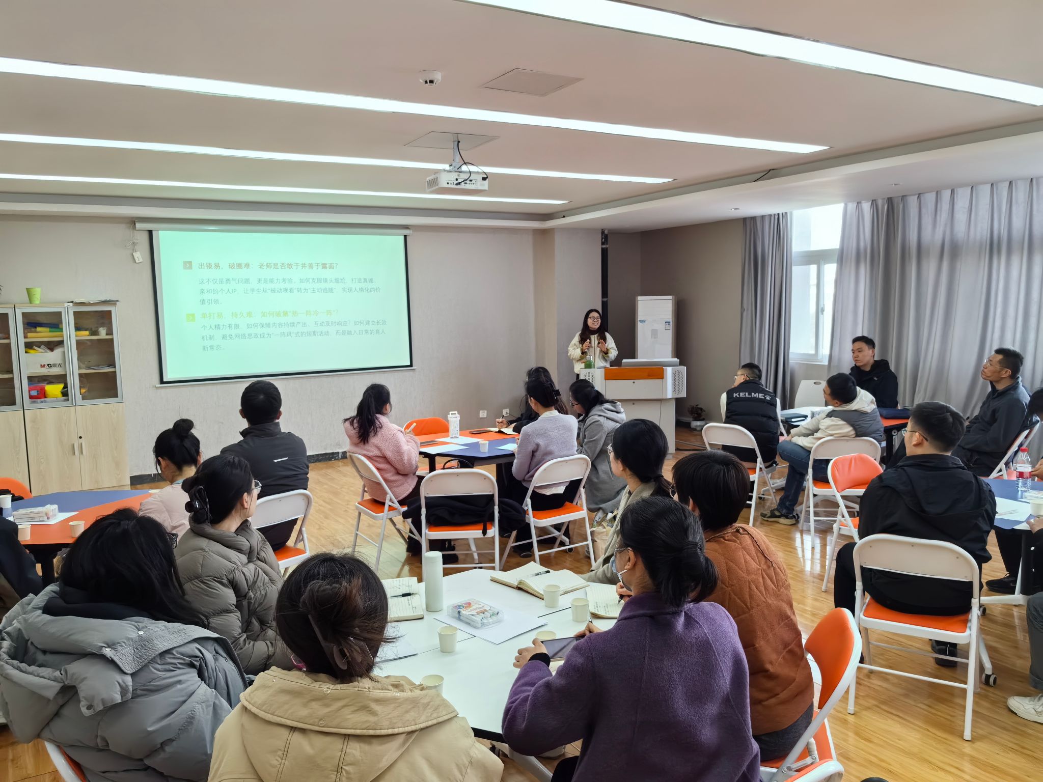 与会辅导员围绕“网络身份定位与安全风险”“时间分配与可持续运营”“技术突破与团队协作”等核心议题分组深研。王明娣、刘振憾等辅导员代表随后分享各组研讨成果,聚焦内容深度与传播效度平衡、个人发展与破局路径等关键问题,提出多项创新思路。