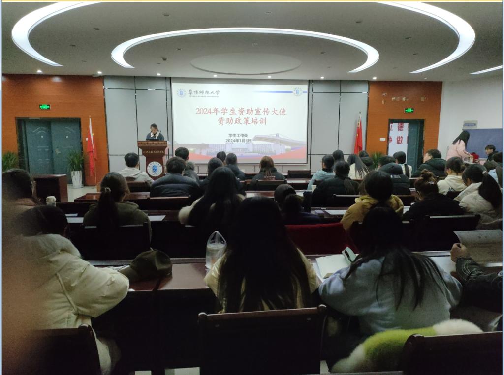 为进一步宣传资助好政策,传播资助好声音,让学生在实践锻炼中长见识、增才干、肯奉献,1月3日晚,学校在西湖校区理科教学综合楼二楼圆形报告厅举办了2023年度优秀学生资助宣传大使评选暨2024年度聘任工作。全校110余名学生资助宣传大使、各学院学生资助负责人和学生工作处相关工作人员出席活动,此次活动由化学与材料工程学院承办。