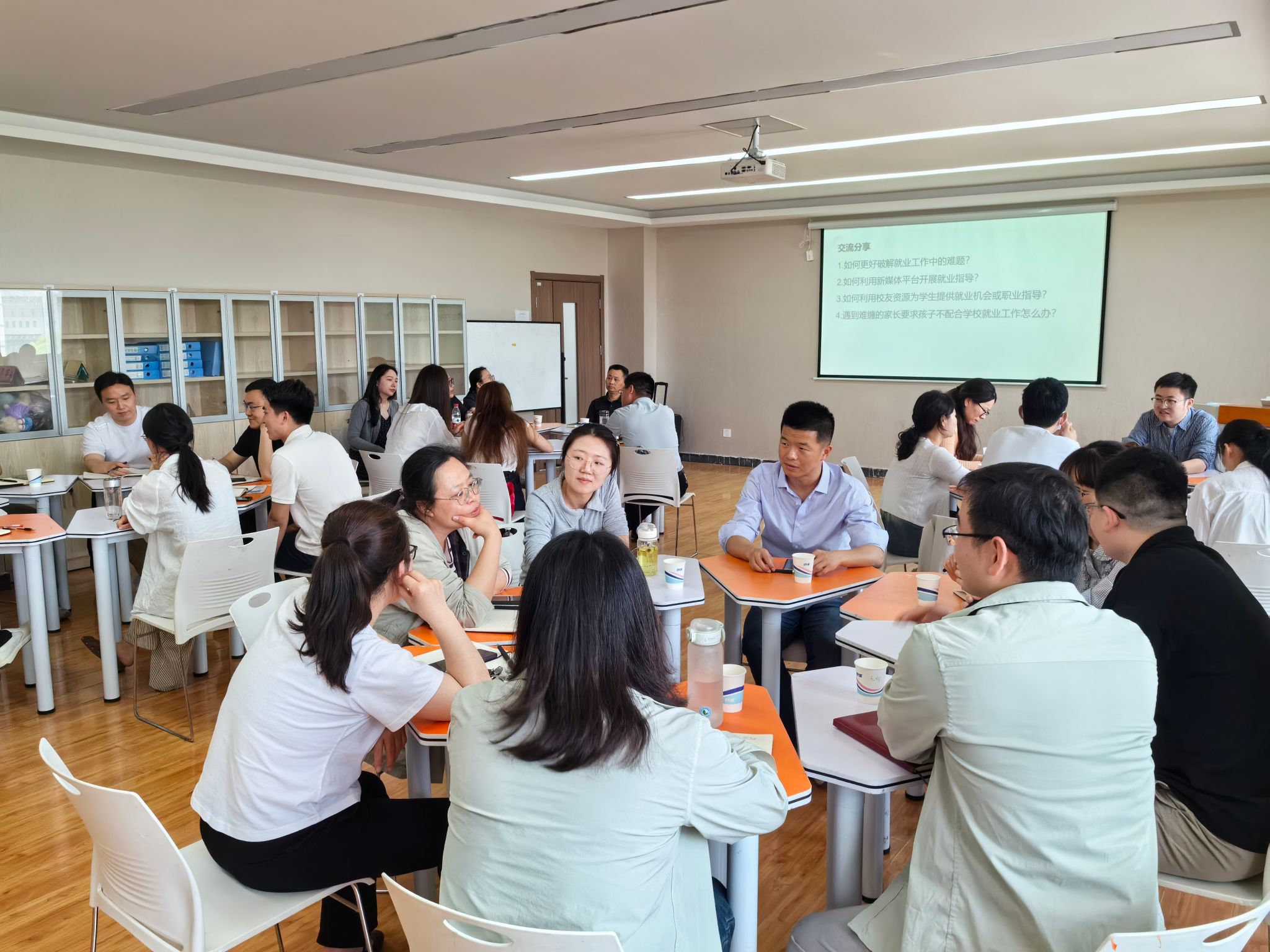 与会人员围绕当下辅导员就业指导面临的问题与困境、技能提升的通道及创新举措等4个议题进行了分组研讨,并交流了小组研讨成果。