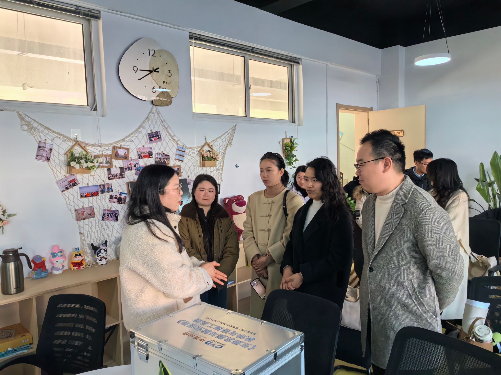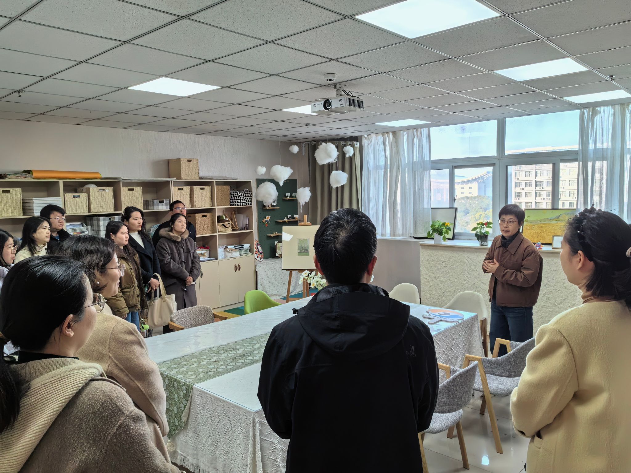 交流期间,胡文丽一行先后实地参观了我校“文道职业生涯”辅导员名师工作室、“愈见”艺术疗愈辅导员名师工作室及学校心理健康教育中心。