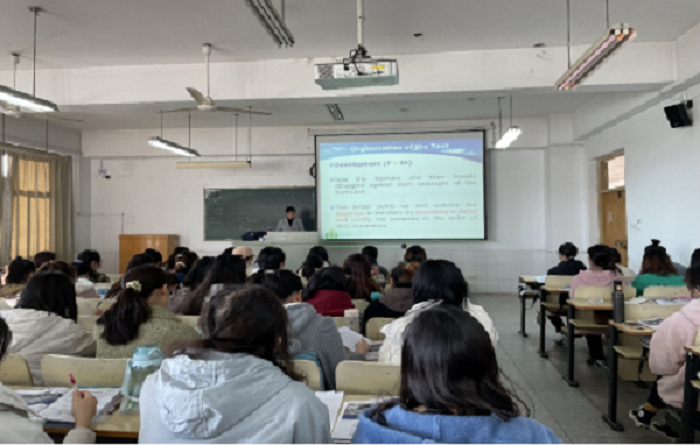 学院所属4个系部分别遴选推荐一位政治素质、教学技能强的中青年教师参加本次教学观摩周晒课。英语系教师李珍莉讲授的《迎战卡米尔号飓风》,从背景知识、文章结构和语言特点等方面,生动地解析飓风来临时人们的心理活动,展现了人类面对自然灾害的大无畏精神。翻译系教师刘文婷通过教材和图片带领学生认识各种食物的韩语表达方法,深入浅出地讲解了“韩语数字和数量词的表达”章节内容。日语系教师班粲结合日本历史和世界历史,以丰富资料和生动语言讲授了外来语在日语生根发芽的三个阶段,引导学生在掌握现代日语的构成的同时,拓宽了文化视野,树立了中华文化博大精深、源远流长的民族自信心。大学英语教学部教师马凯昱围绕《我们身边的英雄》主题,精心设计教学环节,在知识传授的同时鼓励学生崇尚英雄、学习英雄,争做英雄。