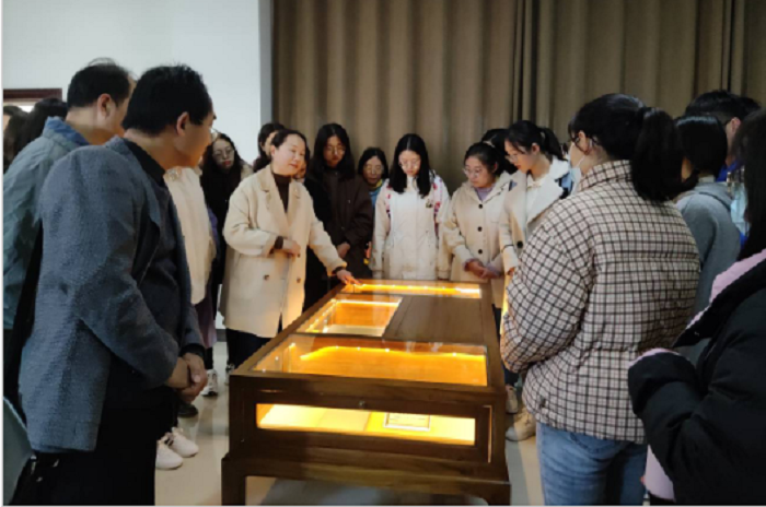 开展新生入馆教育。11月8日,学院班子成员、新生辅导员及2021级学科教学(历史)研究生到校图书馆参观。图书馆馆长王申红详细介绍了过刊阅览部、古籍收藏室、参考研究中心的藏书和利用概况,并从版本学、目录学等文献学角度深度解读了图书馆收藏的主要古籍善本情况,为参观师生上了一堂生动而难忘的古典文献课。双方围绕如何更好地发挥图书馆在学科专业建设、科学研究、学生成长成才中的作用进行座谈交流。