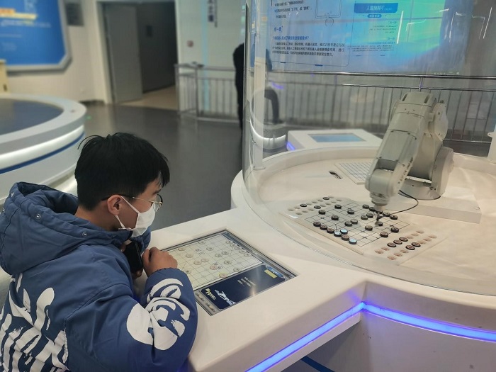 在市科技馆沿一至四楼“科学乐园”“智慧创造”“我与我家”“天地之间”4大主题展厅,同学们体验了科技的奥妙,感受到科学性与趣味性相融合带来的知识力量。在“科技乐园”,了解蚂蚁归巢、灭害虫、森林探险等项目;在“智慧创造”,模拟龙卷风、体验声控烟花、与机器人下象棋、和机器人扳手腕等;在“我与我家”,体验食物的旅程、安全驾驶、耐力测试、当高铁司机、看裸眼3D电视等项目;在“天地之间”,通过望远镜观看星空,感受到地球的渺小和浩瀚宇宙无穷无尽的魅力。