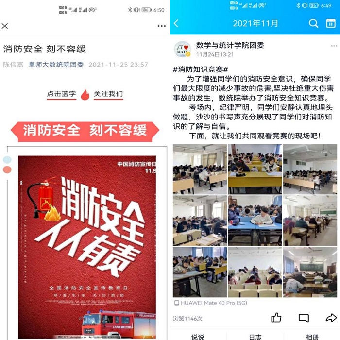 11月24日下午,数学与统计学院于在西湖校区躬行楼、清河校区教学主楼开展消防知识竞赛,考查同学们对“四懂四会”等消防知识的掌握,加深同学们对消防知识的了解和掌握。