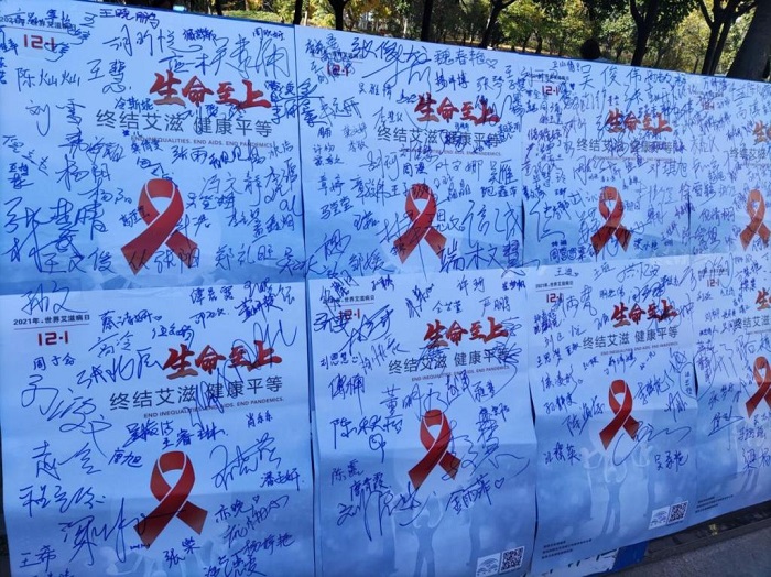 活动现场,志愿者们为师生发放宣传手册,科普艾滋病防治知识。参与活动及路过的同学在志愿者的引导下,在签名展板上留下自己的姓名,并纷纷表达自己愿意积极参与到艾滋病日常教育、宣传的队伍中来。本次活动以宣传艾滋病的预防知识为主,让同学懂得如何远离艾滋病毒、珍爱生命,同时也需要认识怎样去对待艾滋病患者,消除对艾滋病病人和感染者的歧视,积极动员身边的人参与到艾滋病预防、控制以及关爱艾滋病人的活动中去。