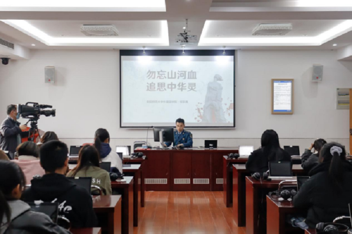 12月10日,外国语学院退伍大学生代表邹家晟开展“勿忘山河血,追思中华灵”主题班会。邹家晟从南京大屠杀的历史背景、事件经过、事实证据、设立公祭日及相关意义四个方面展开。他表示,忘记历史就意味着背叛,否认罪责就意味着重犯。我们没有忘记,30万生灵涂炭、惨绝人寰;我们不能忘记,国家饱受凌辱、山河破碎;我们应当铭记,国之为国,必当自强。一个民族唯有勿忘历史,以史为鉴,方能面向未来,巍然屹立。他号召全体学生用实际行动捍卫祖国尊严,引导学生树立和培育正确的理想信念,弘扬民族精神,增进爱国情感,提高道德修养。同时让同学们坚定铭记“落后就要挨打”的道理,发奋学习,争做强国一代。
