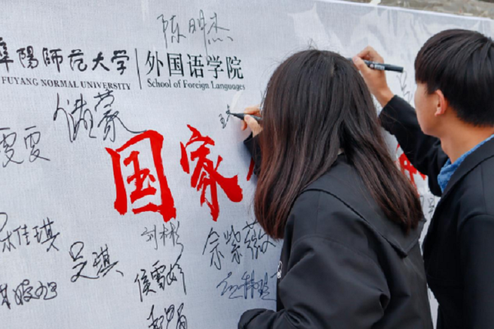 12月12日下午,外国语学院在西湖校区举行“悼念南京大屠杀罹难同胞”公祭活动。活动现场,主持人深痛悼念南京大屠杀的惨痛历史,参与人员面含悲色,静立深思,现场气氛沉重肃穆,全体同学高喊着“请党放心,强国有我”的时代宣言。参与人员集体默哀,缅怀南京大屠杀的无辜死难者和所有惨遭日本侵略者杀戮的死难同胞。在“国之公祭,催振民心。昭昭前事,记忆犹新。”的悼词中,参与人员在公祭牌郑重地签下自己的名字,并献上鲜花以祭哀思。