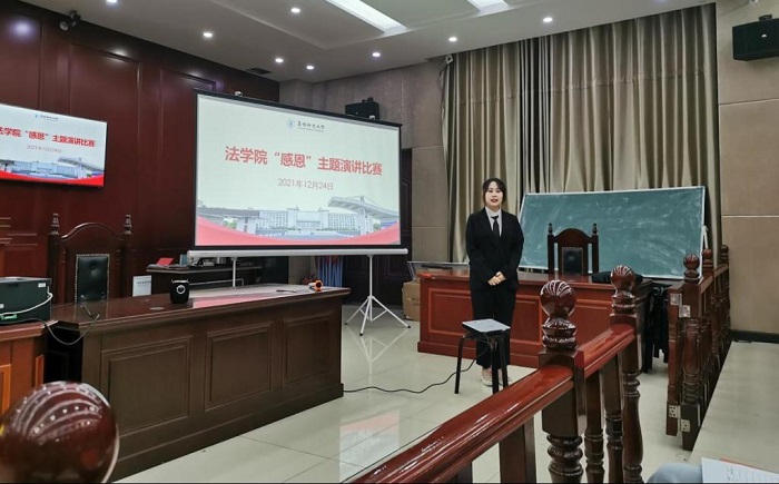 法学院于12月24日在模拟法庭开展开展“感恩”主题演讲比赛活动,部分受助学生参加。本次比赛旨在引导受助学生要常怀感恩之心,做一个知恩、感恩、报恩之人,将感恩常怀心中,将感恩付诸行动,努力学习,不断奋进。