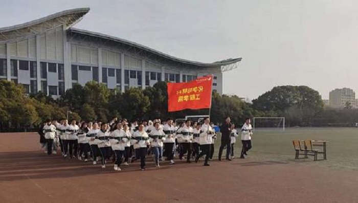 在马健的带领下,同学们迈着整齐的步伐奔跑在环形跑道上。“三走五早,青春起跑”、“精英化材,豪情满怀,超越自我,赢在未来”的口号高亢嘹亮,伴随着清晨初升的太阳和随风飘扬的院旗,同学们斗志昂扬、积极向上、充满活力,展现了青年大学生良好的精神状态和身体素质。