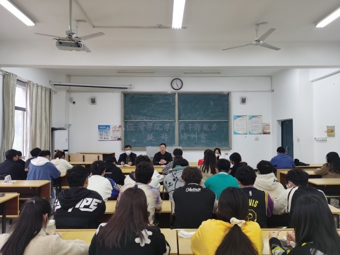 3月31日,经济学院在西湖校区组织开展学生干部能力提升培训会,学院党委书记房厚信出席会议并作主题报告,学院辅导员和学生干部代表参加了培训,会议由学院团委负责人关欣雨主持。